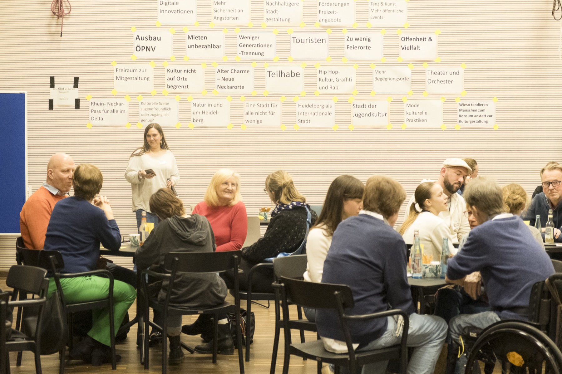 Wie denken junge Menschen über Heidelberg? Welche Vision haben sie für die 2030er Jahre? Uschy Szott und ihr Team vom Haus der Jugend bereiteten uns einen besonderen Abend. Ab 18:00 Uhr lernten wir in Führungen das Haus der Jugend und seine außerordentliche Arbeit kennen. Gegen 19:00 Uhr vermittelten die jungen Menschen ihre Vision auf unsere Stadt – in Form eines Speeddatings und einer Podiumsdiskussion. Wir gehen mit mehr als 100 Ideen, Vorschlägen und Wünschen der jungen Teilnehmer in die Zukunft.